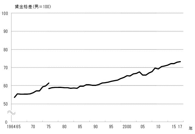 独立行政法人 労働政策研究・研修機構が発表している長期労働統計によると、2017年の所定内給与における男女の差は89,400円でした。これは男性の賃金を100とすると、女性のそれは73.4です。男女間の賃金格差は社会または家庭における女性の発言権を弱めている一因だと考えています。1985年の男女雇用機会均等法により、働く場所を選ぶ際の平等は推進されましたが、働いた結果としての賃金格差が残っています。子育て世帯のうち共働き世帯が多くを占めるようになっているにもかかわらず、縮小傾向ではありますが、賃金格差がなくならないというのは不思議です。賃金格差を解消するにはどうしたら良いのでしょうか。