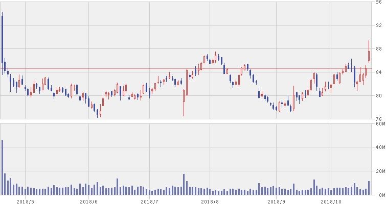 好決算を受けて、株価は3.5%の急騰となりました。