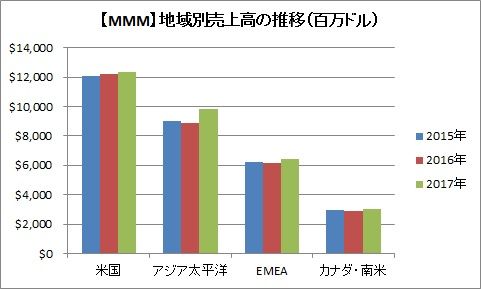 他3地域は、2015-2016年は減収となっていますが、2017年は揃って増収です。なかでもアジア・太平洋地域の伸びが顕著ですね。