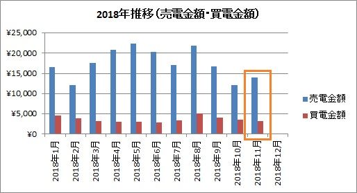 一方、買電金額は、前月比で3,934円(96%)の大幅増加、前年同月比で3,395円(73%)の大幅増加でした。
