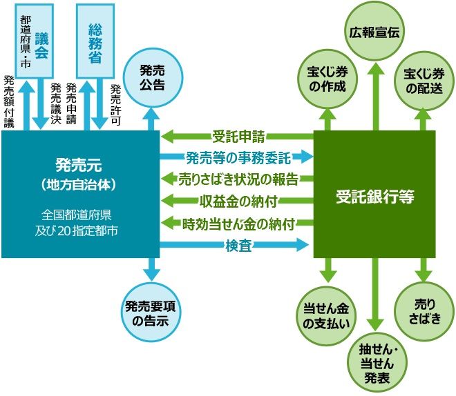 その胴元とは、発売元である地方自治体(都道府県及び20政令都市)です。