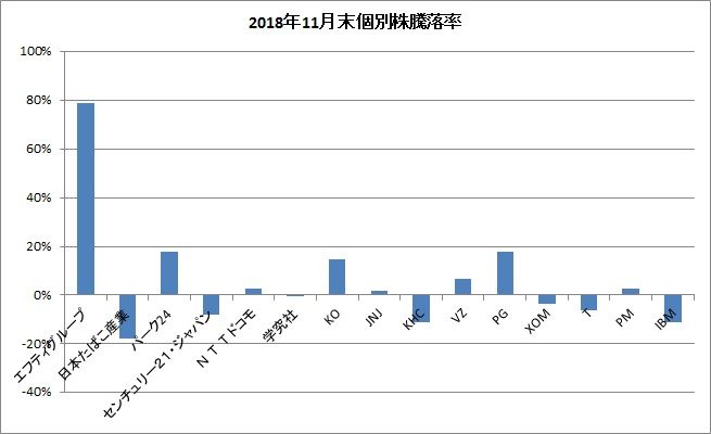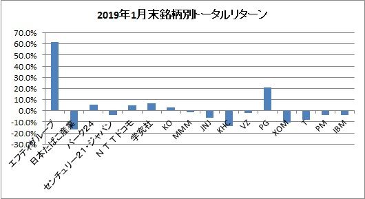 保有銘柄のトータルリターンは下棒グラフの通りです。前月までは平均取得価額と現在株価の変化率を掲載していましたが、今月より配当込みのトータルリターンを表示することにしました。