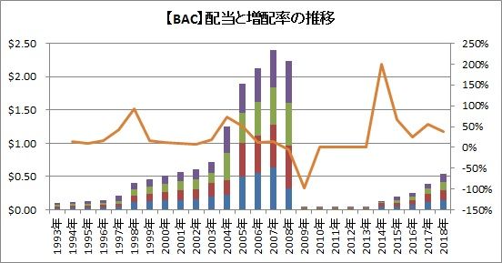 バンカメ(BAC)はダウの構成銘柄にも関わらず、ほとんど調べたことがありませんでした。バークシャーが買い増したとのことで、注目も集まると思いますので、過去の業績や配当状況について調べてみました。