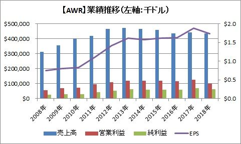 カリフォルニア州などで水道・電気事業を手掛けるアメリカン・ステーツ・ウォーター(AWR)が2018年第4四半期の決算を発表しました。内容は悪かったです。