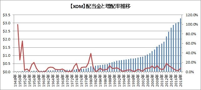 2銘柄がどれだけの期間配当を増やし続けているかと言うと、IBMは18年間、エクソンは36年間です。