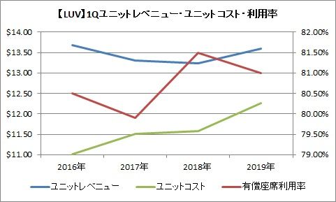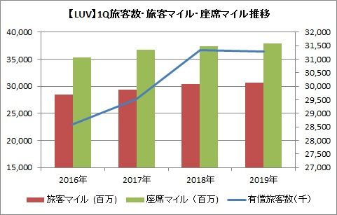 米サウスウエスト航空が2019年第1四半期の決算を発表しました。内容はまちまちでした。