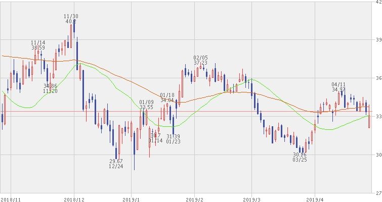 決算発表を受けて、株価は下落しました。737MAXの運航停止による減収と、原油価格上昇に伴う燃油費の上昇の見込みが、投資家に嫌気されました。