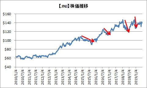 とはいえ、JNJのような超優良企業の株価は、いくら暴落しても、そして何度も急落・暴落をしても、ほぼ確実に復活してきます。そしてそれを上回ってきました。