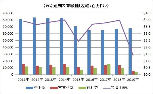米日用品メーカーのプロクター&ギャンブル(PG)は2019年第4四半期決算と通年の業績を発表しました。内容はまちまちでした。※以下、通年の数値で紹介します。