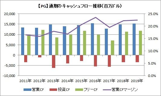 P&Gの通期のキャッシュフローは以下の通りとなりました。