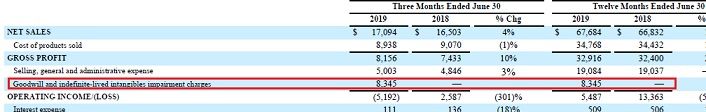 営業利益が大きく減少したのには、カミソリブランドのジレット事業に関わる80億ドルの減損処理を行い、第4四半期に83.4億ドルの評価損を計上したことが原因です。