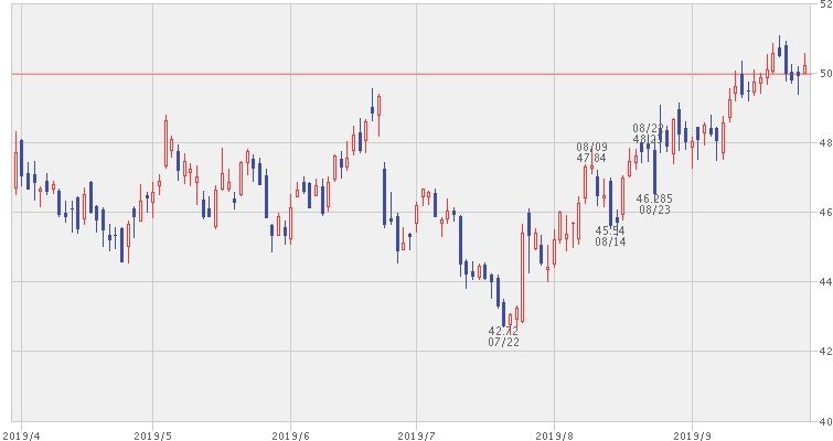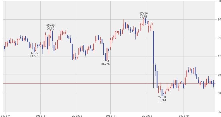 主に10月1日~4日にかけて権利落ち日を迎える主な銘柄の四半期配当と配当利回り、権利落ち日、配当推移、株価チャート(※一部不掲載の場合あり)を掲載しています。30年以上連続増配の場合は、その年数も載せています。
