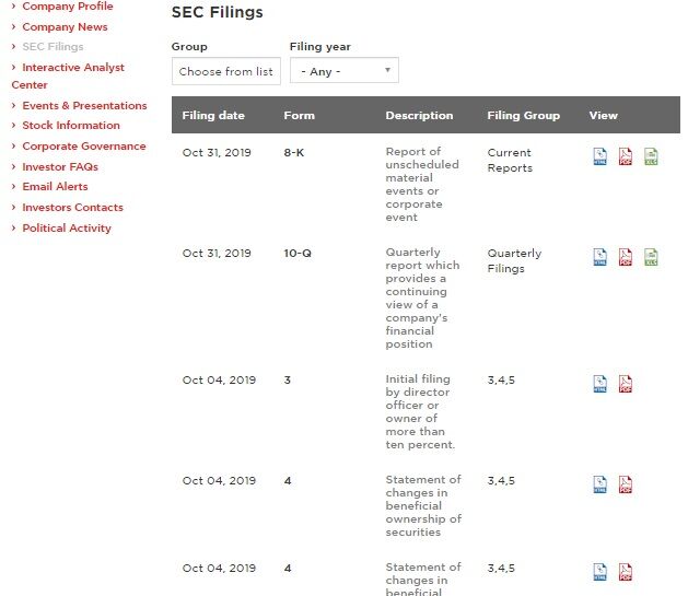 【Investor Relations内のSEC Filings】