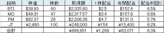 ・BTI、MO、PM、JTへ均等に投資