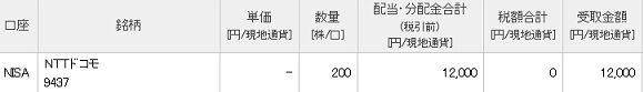 国内通信大手のNTTドコモ(9437)から中間配当を受け取りました。