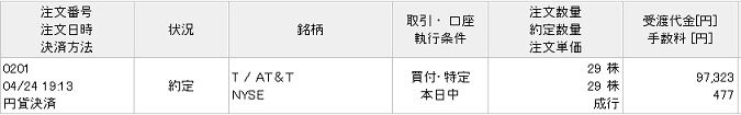 さて今回(4月第4金曜)は、米通信大手のAT&T(T)を買い付けました。