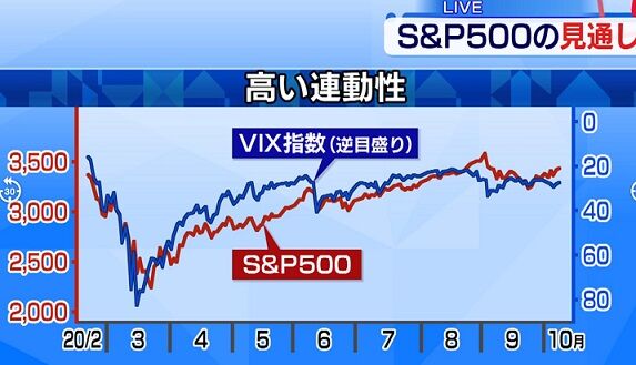 S&P500指数とVIX指数(恐怖指数)を重ねてチャートを提示し、そこに高い連動性を見いだしています。「市場が不安を感じている時に、リスクを取っていれば、高いリターンを得られた」としています。