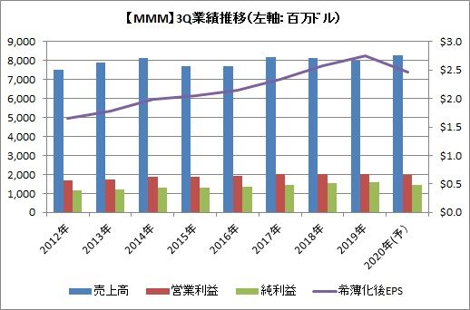あ、ちなみに2019年第3四半期は、事業売却分で0.14ドル多く利益が積まれたので、それを差し引くと、前年比5.7%減となります。