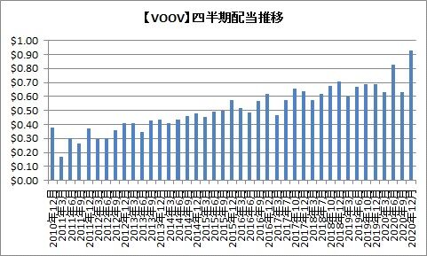 VOOVは第4四半期配当を0.9326ドルと、前回比47%も増配しました。これは去年の同時期と比べても35%も多い配当です。年間配当は3.0287ドルとなり、興味深いことに増配率は2019年の2.2%を大きく上回る14.7%でした。