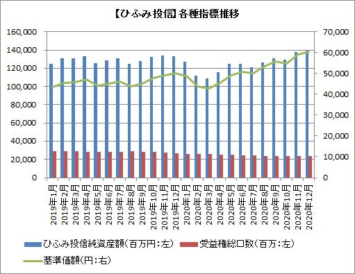 もう一つは、受益権総口数の減少です。ひふみ投信12月度運用レポートによれば、12月30日時点の受益権総口数は232億4068万口で、前月比で0.2%減少しました。受益権総口数の減少は2ヵ月連続です。そして年間で12.5%減少しており、2019年1月比で19.2%減少したことになります。
