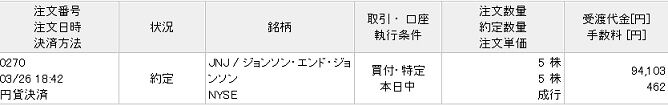 さて、3月第4金曜だった26日は、ヘルスケア大手のジョンソン&ジョンソン(JNJ)を10万円分買い増しました。単価は162.09ドル、株数は5株、受渡代金は94,103円でした。ジョンソン&ジョンソンを買い増すのは、2019年9月以来の1年半ぶりのことです。やっと買い増せました!嬉しい!