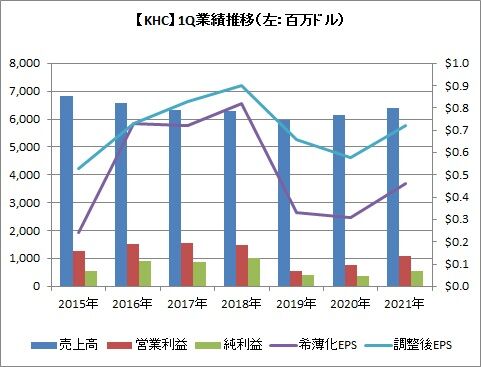 米食品大手のクラフト・ハインツが2021年第1四半期(1-3月)の決算を発表しました。内容は良かったです。既存事業売上高は前年比2.5%増加、調整後EBITDAは同12%増加しました。