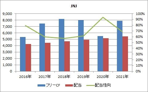 配当性向は概ね75%を下回ると、その企業の配当の安全性は高いと言えますので、ジョンソン&ジョンソンの配当は安全でしょう。まぁ、そうですよね。パンデミックが直撃した2020年において、フリーキャッシュフローが激減しても、配当性向が100%を超えなかったのですから、耐性はあるのです。