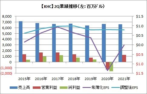 セグメント別では、クラフト・ハインツの最大市場である米国が苦戦しており、3%余り売上高が減少しました。昨年はコロナ禍での巣篭り需要が旺盛でしたが、経済活動が再開されて始めていることで、需要が減退したのでしょう。またナッツ事業の売却も、減収に影響しているでしょう。