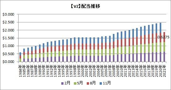 ベライゾンは連続増配を維持しており、毎年配当は2%程度の増加させています。8月支払分までは一株あたり0.6725ドルでしたが、次回11月分は増配のタイミングです。おそらく次回増配も2%程度になると思っています。大幅増配なくとも、着実に増えてくれれば(減るよりは)いいでしょう。