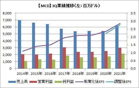 決算を受けて、マクドナルドの株価は2.7%高で終えました。12月配当では7%増配を既に発表していますし、株価と配当の両方でリターンをもたらしてくれそうです。