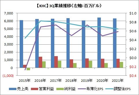 もともとクラフト・ハインツはキャッシュ創出能力は長けていないのですが、この9ヶ月間を見ると、営業キャッシュフローが減少しています。フリーキャッシュフローも当然減少しています。