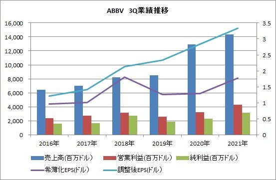 米製薬大手のアッヴィ(ABBV)が7-9月の決算を発表しました。