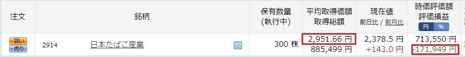 私は取得単価2951円なので、まだ570円余り足りていません。