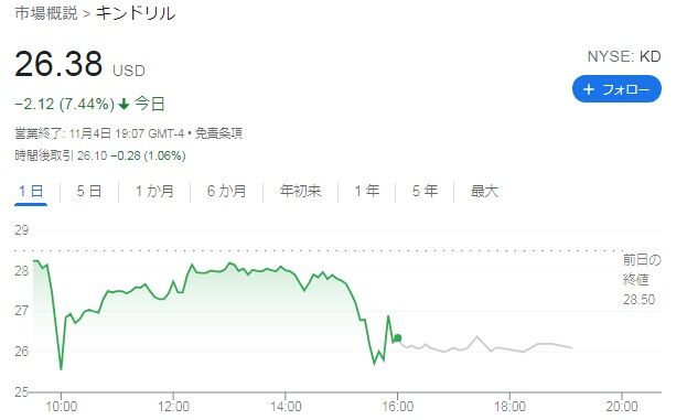 IBMの資産がキンドリルに移動したので、その株価が下がるのはある程度想定内なのですが、キンドリルまでいきなり下落って、どういうことなの、、。分社化の意図が投資家に正確に伝わっていないか、投資家はキンドリルに期待していないか。たぶん後者でしょうね。