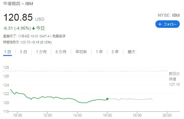 が、取引初日は両銘柄とも下落という悲惨な結果に。IBM株は5%、キンドリル株は初日から7%の急落。