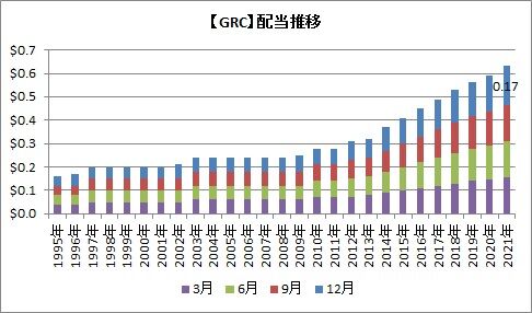 2012年以降の年平均増配率は9%となっており、配当成長株として見ることもできますね。米国では1兆ドル規模のインフラ投資法案が可決されたようなので、今後も益々GRCの事業にとっては追い風となりそうです。