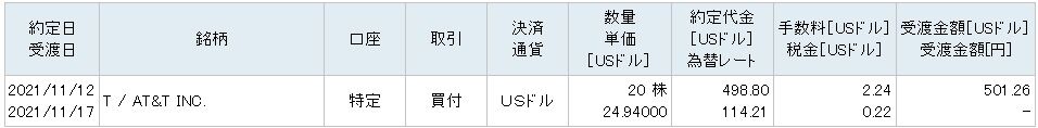 単価24.94ドルで20株を買い増ししました。受渡代金は501ドル。