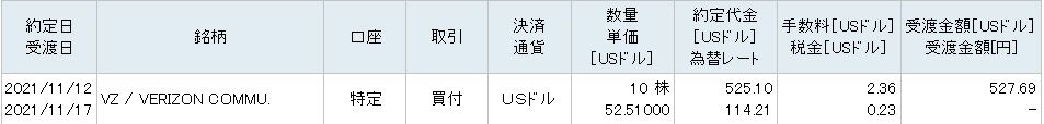 単価52.51ドルで10株を買い増し。受渡代金は527ドル。