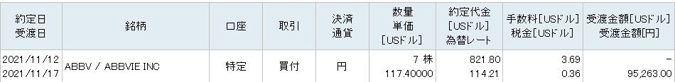 それと、、、実は、先日ABBVを7株買い増ししていました。