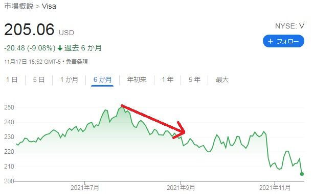 ビザ株が再び大幅安に見舞われました。