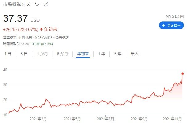 メーシーズ株は年初来では233%高、、。アマゾンとかテスラとかより上昇率が凄いんじゃん??
