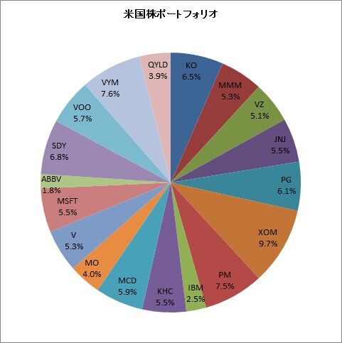 米国株資産のうち1/4はETFです。3/4は個別株。特に高配当、連続増配株を中心としたポートフォリオとなっています。レバナスとかは一切入れていません。