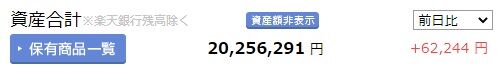 資産額がまた増加しました(嫌味じゃないよ)。前日比+6.2万円の2,025万円となり、これまでの最高額となっています。
