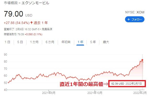 そしてXOMです。XOMは続落となっていましたが、2019年4月以来初めて80ドルを突破するなど高値更新(最高値ではない)が続いていました。