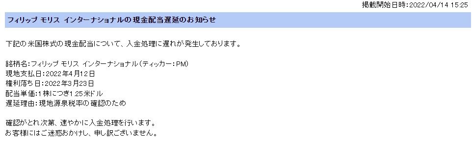 とにかく楽天証券では、PM株の配当についてはほぼ毎回遅延が発生しています。