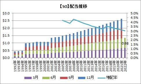 サザンは米南部を中心に電力事業等を行う企業で、22年間連続して増配を行う優良銘柄です。