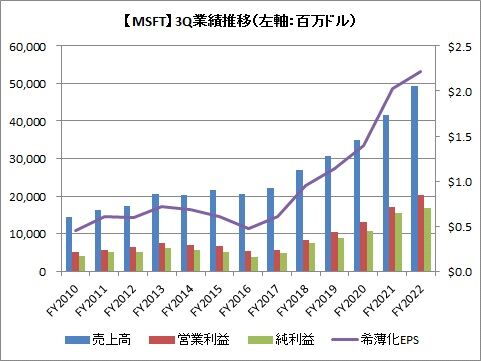 米マイクロソフト(MSFT)が26日の取引終了後に、FY2022-3Q(1-3月期)の決算を発表しました。内容は市場予想を上回ったので良かったと思いますが、市場の反応はいまいちな感じとなっています。