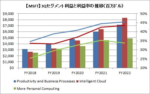 More Personal Computingの利益率が最も低く、前年同期比でわずかに低下しています。