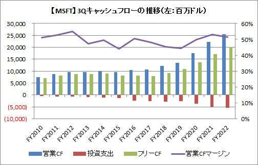 営業キャッシュフローマージンは51.4%で、前年同期比で2ポイントほど低下しました。とはいえ、素晴らしい水準であることは変わりありません。