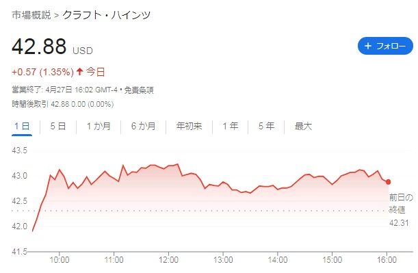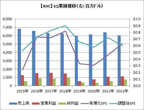 米加工食品のクラフト・ハインツ(KHC)は27日、2022年1-3月の決算を発表しました。トップラインとボトムラインは前年比で減少したものの、内容は良かったです。